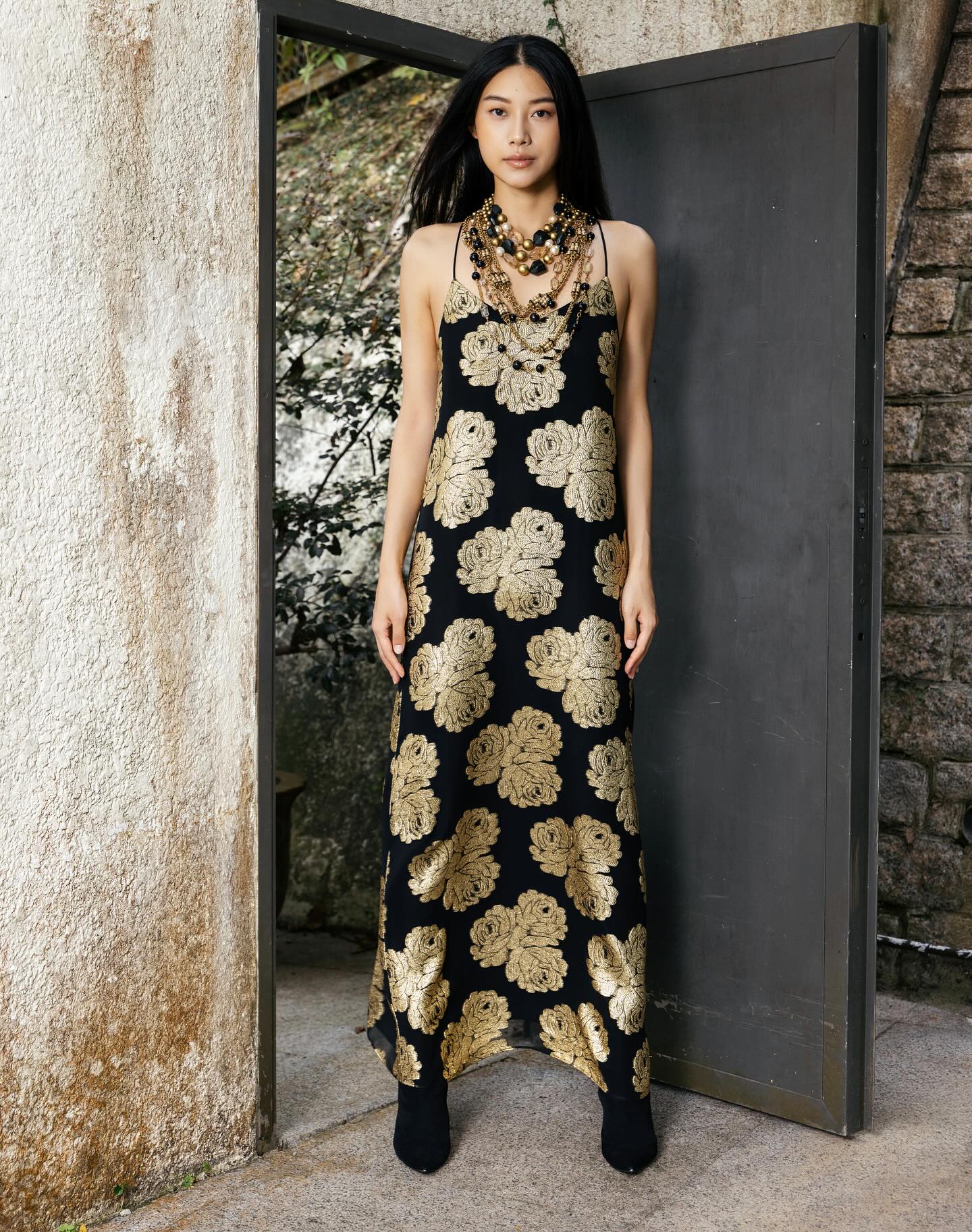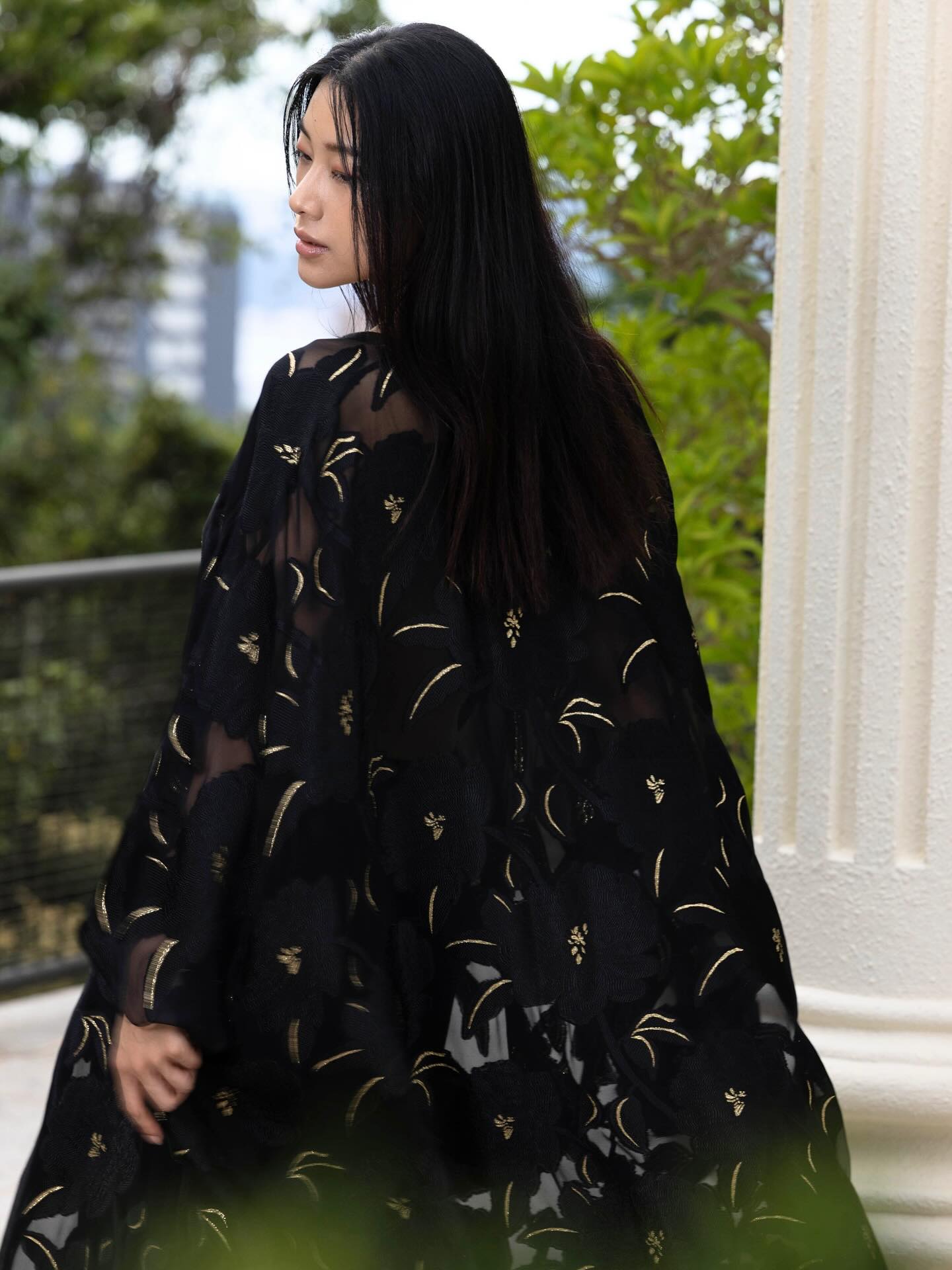Metallic Palm Silk Chiffon Boubou Caftan Black and Gold Luxury One Size Evening Kaftan